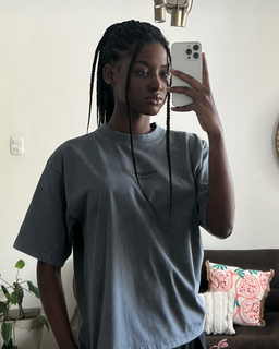 Proceso de teñido y desgaste. Rupturas sutiles en costuras y de corte Boxy Regular.